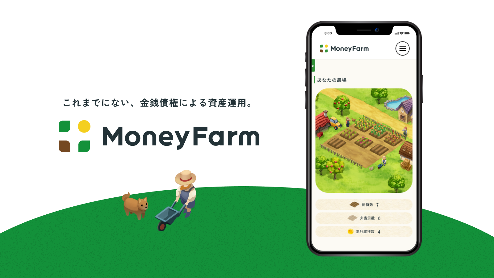 Money Farm(マネーファーム)は個人投資家へ金銭債権というオルタナティブ投資機会の提供を行いつつ、成長企業への資金需要ニーズを満たす全く新しいプラットフォームです。 これまでにない資産運用体験を提供しています。